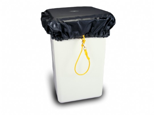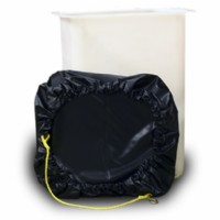 All Estex bucket covers are made from heavy vinyl coated nylon (truck tarp material) for durability and water resistance. Bungee cord sewn into hem allows for a snug fit. The "2715" series has a 2" foam block sandwiched between two layers of fabric in the top to repel water so the cover doesn't sag into the bucket. The heat welded pocket allows the cover to be used inside-out if the outside cover is ripped. This cover comes with a lanyard and snap to attach the cover to the truck.