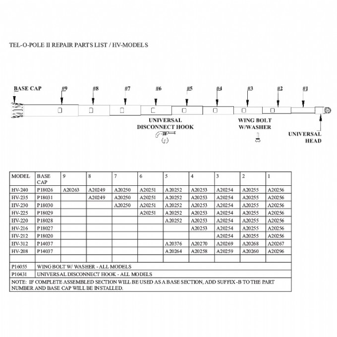 Replacement section #1 for the following models Tel-O-Poles: