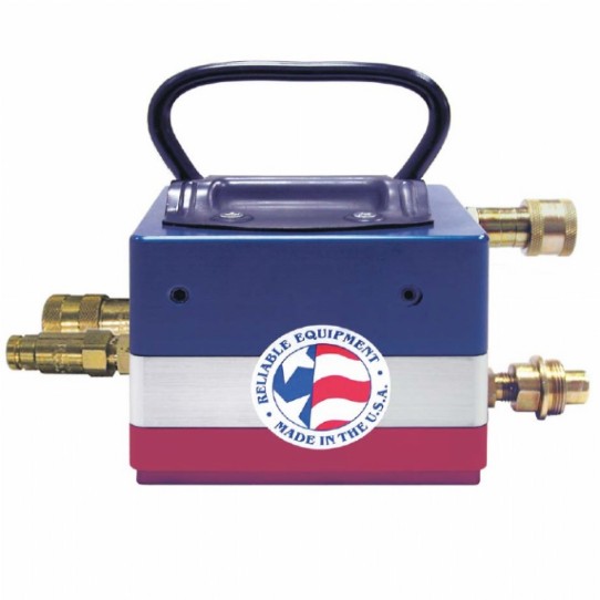This revolutionary intensifier will increase line pressure to a maximum of 10,000 psi and is fully compatible with all high pressure hydraulic equipment. (i.e., Crimping, Cutting and Spearing Tools)