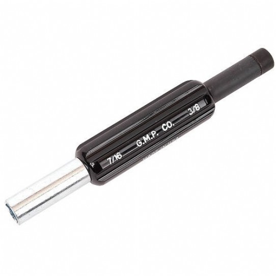 This dual purpose "can wrench" gives you a larger (one inch dia.) thermoplastic handle than the Bell standard version, with a 3/8 in. socket for use on live binding posts and a 7/16 in. socket for opening cabinets and terminal locks.